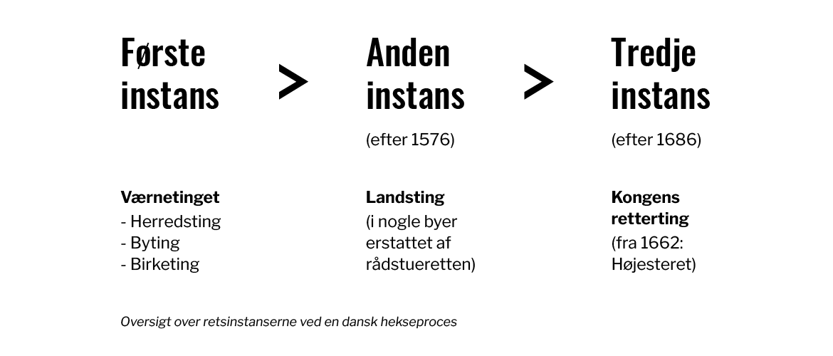 Indtil 1576 kunne man blive dømt til døden for trolddom allerede ved værnetinget dvs. i første instans. Herefter blev det bestemt ved lov, at en dom for trolddom også automatisk skulle prøves ved landstinget. Altså en tvungen appel. Ved landstinget blev omtrent halvdelen af de dømte frikendt. Størstedelen af de danske hekseprocesser fandt sted efter 1576, hvilket betød, at de fleste dømte fik deres endelige dom ved landstinget.