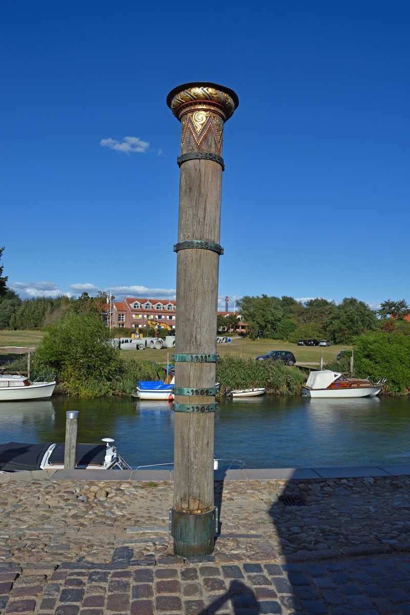 Bronzeringene på den imponerende egepæl markerer de mest alvorlige stormfloder, der har ramt Ribe.